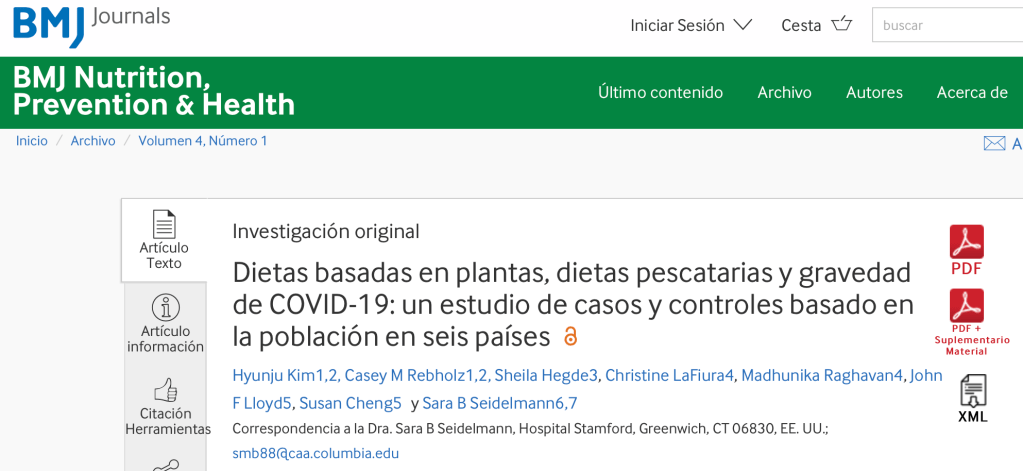 Las dietas basadas en plantas o las dietas pescatarias son patrones dietéticos saludables, que pueden considerarse para la protección contra COVID-19 grave.
